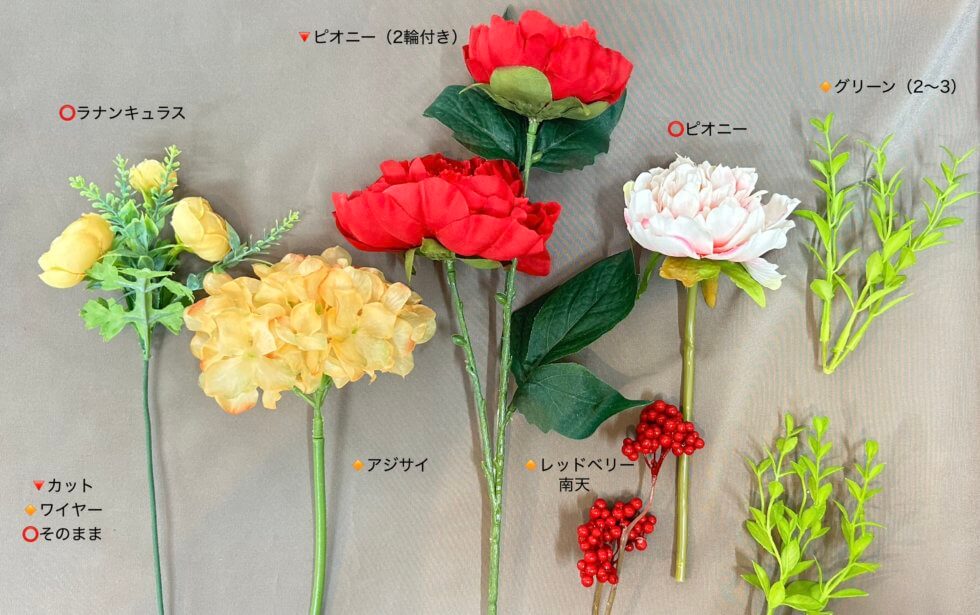 今回しめ縄飾りで使用した花材です。