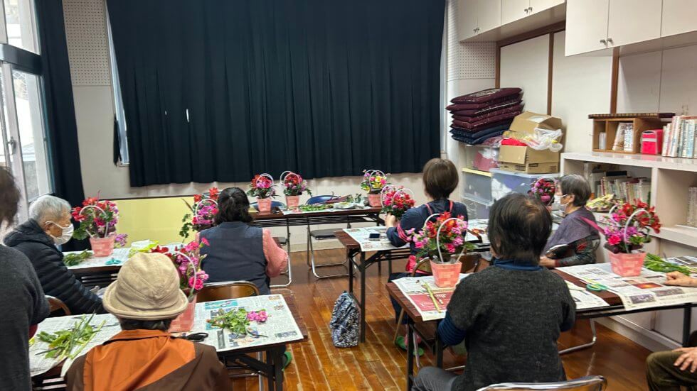 今回、地域の交流の場として豊見城自治会にて高齢者コミ二ティーとしてフラワーアレンジメント講習会をご活用いただきました。
